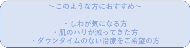 | 表情じわ(額・眉間・目尻・鼻根・顎・口角・バニーライン・ガミースマイル) | 1部位 | ¥33,000 |