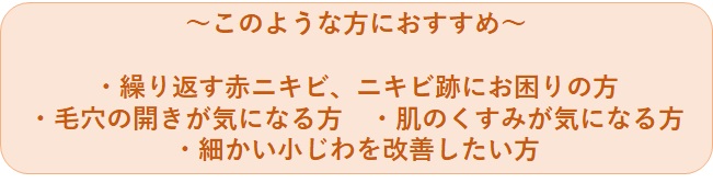 皮膚のターンオーバーを促して新しい皮膚を再生させる生理活性作用があり、ニキビやニキビ跡・シミ・色素沈着・小じわといった様々な肌トラブルに対する効果が期待できます。