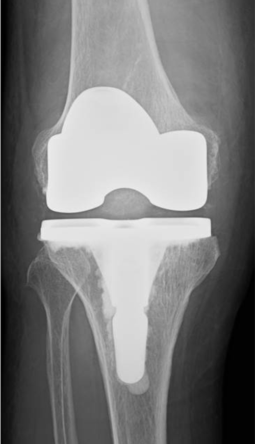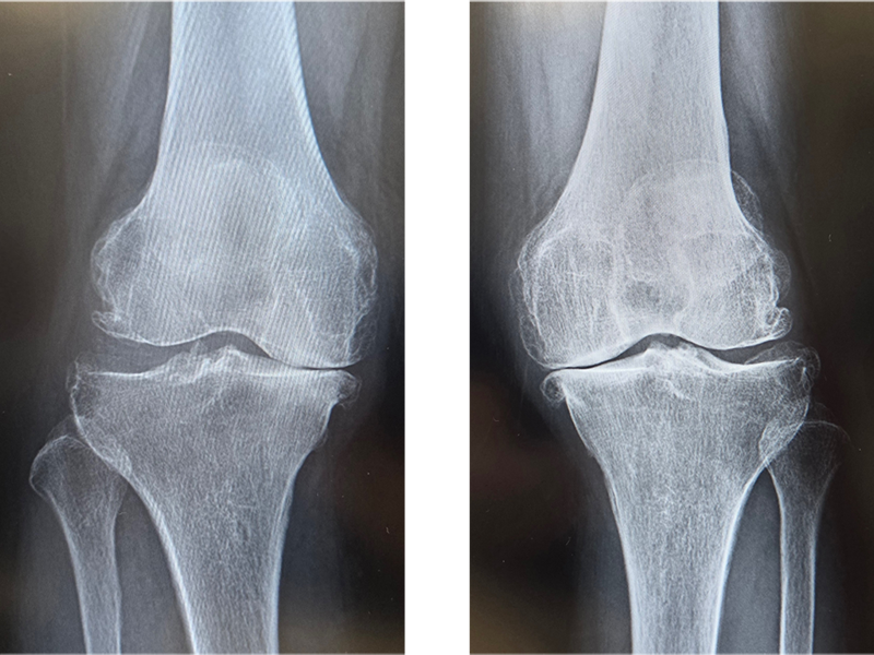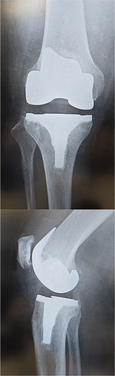 当院にて人工ひざ関節全置換術(TKA)を施行。両側の手術を同時に行いました。両側同時手術の場合でも入院期間は片側手術の場合と大きく変わらず(プラス1週間程度)、麻酔も1回で済むために身体的、経済的な負担の軽減を期待できます。また両ひざが同程度に悪いケースも少なくなく、同時に行うことで左右のバランスが良くなるためにリハビリをスムーズに進めることが可能となります。