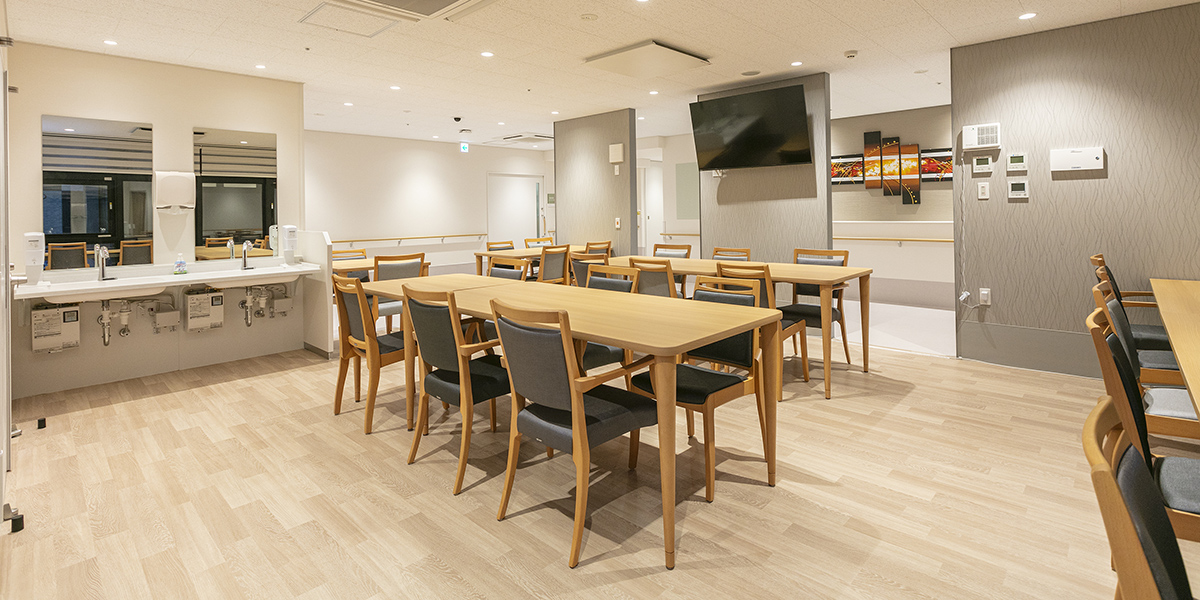 当院では、ご家族との談話スペースとしてゆとりあるデイルームをご用意しています。