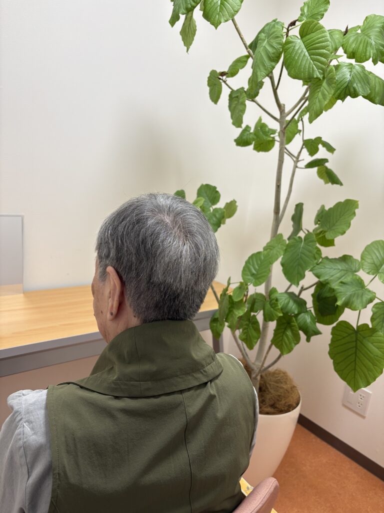こまフェニ便り「理美容開始!!」 こまどり・フェニックスデイ亀有 Facebook コピー 2025.11.14 こんにちは、こまどりフェニックスデイサービスセンター亀有です! 11/11(火)は、お声を多くいただいておりました 『 理美容 』 を開始いたしました! 訪問の美容師を招き、理美容室を準備したうえで髪のカット実施。 「今回はこんなに切っちゃった!!」 「どう?似合ってる?」 「気になってたからサッパリしたよ~」 など、普段口数の少ないご利用者様からも、たくさんのお声をいただきました。 本日の1枚は… 【題名】 『襟足どうなってる?』