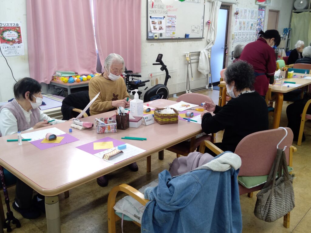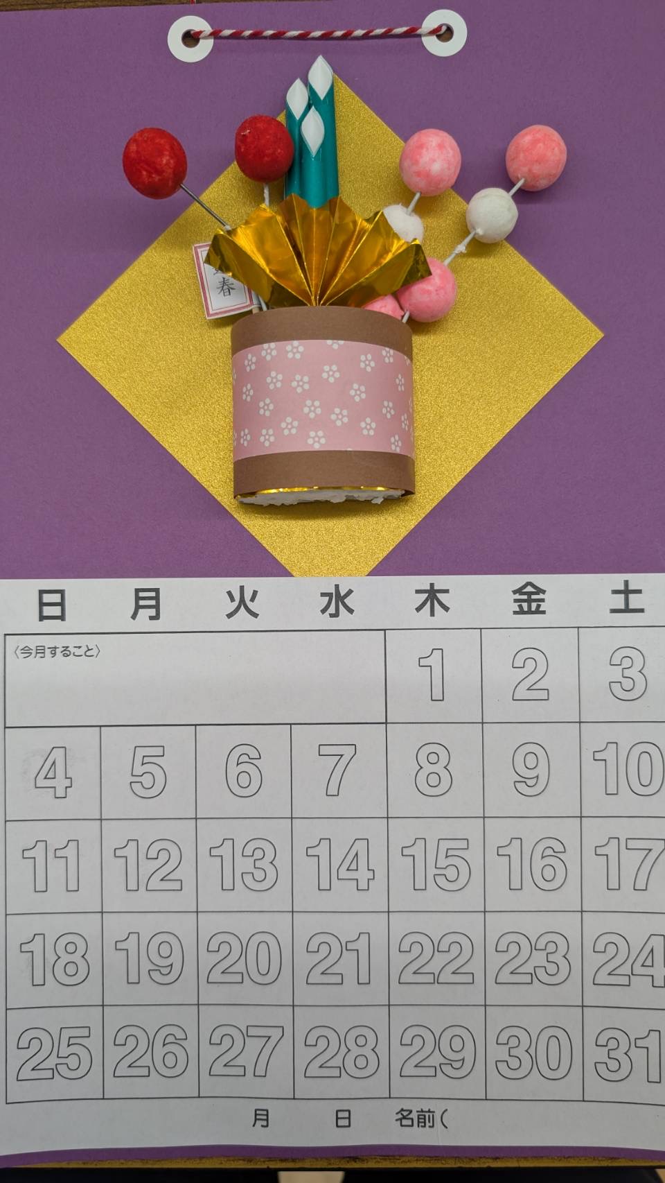 新年を感じていただけるように、画用紙折り紙を用いて、皆様に作っていただきました。