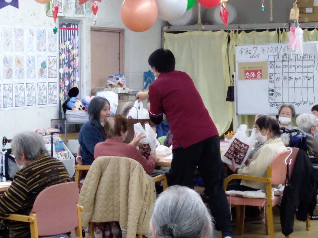 おおるり便り 忘年会 ~今年も1年ありがとうございました~ おおるりデイ Facebook コピー 2025.12.16 こんにちは、おおるりデイサービスセンターです! 今年も残すところあとわずかになりました。当事業所では日頃の感謝の気持ちを込めて 忘年会を開催しました!! お食事は鍋を召し上がっていただきました。 「美味しい!」 「おかわり頂戴」と好評をいただけて良かったです。 そして、午後は皆様で楽しめるチーム対抗レクリエーションを行いました。 優勝した方にはなんと… 豪華賞品を贈呈しました!! 優勝したチームの皆様 おめでとうございます!! 終始笑顔溢れる楽しい時間になりました😊