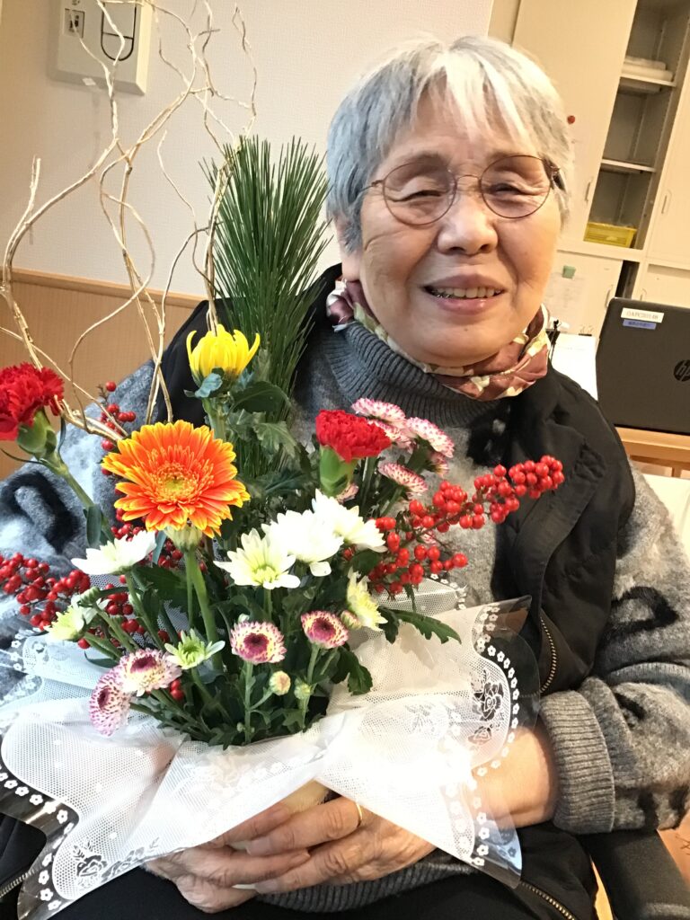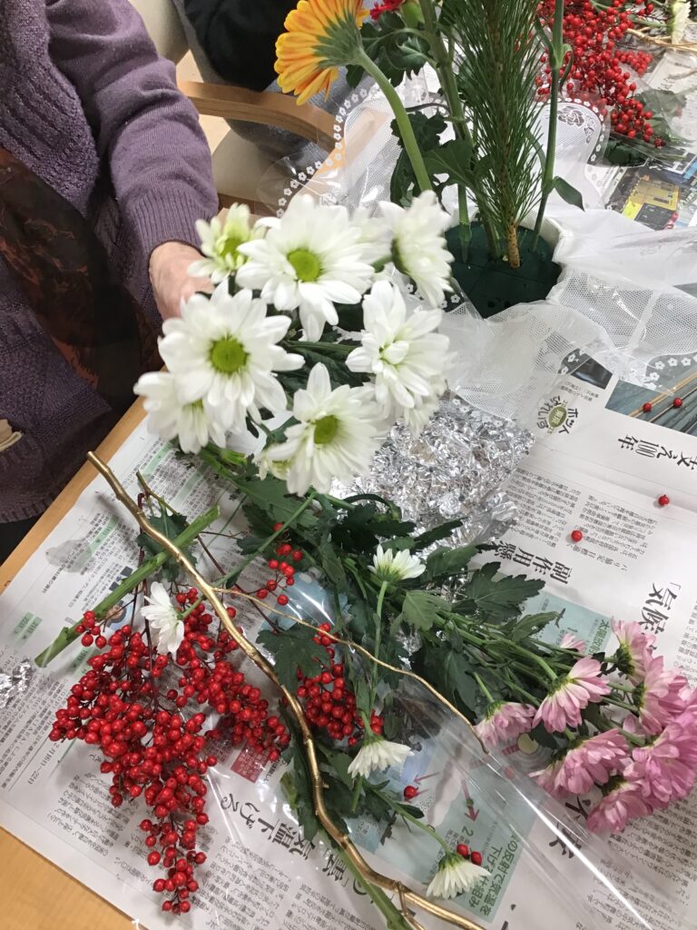 本日は、季節の花を使った生け花を行いました