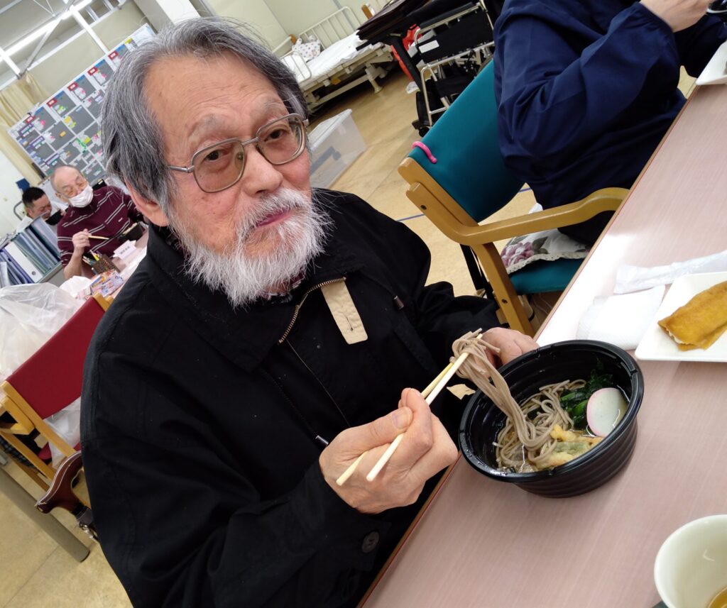 お昼には、一日早い年越しそばとお稲荷さんをお召し上がりいただきました。皆様「一人だとあまり食べないないからうれしい」「すごく美味しい」と喜ばれて、笑顔で召し上がっておりました。