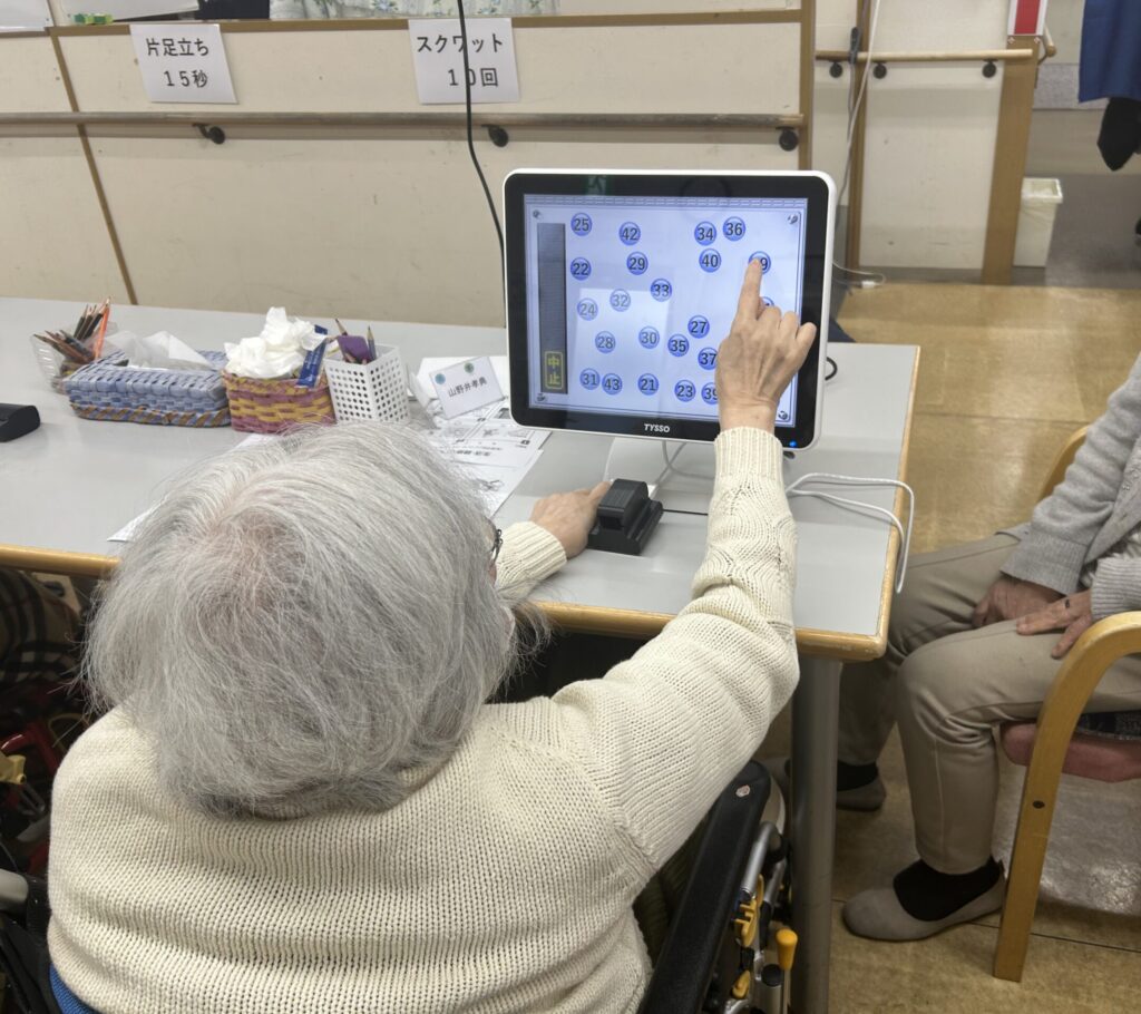 またサーキットの途中で皆様に、血管年齢脳年齢を測っていただきました。血管年齢は機械を指に軽く挟むことで測り、脳年齢はゲーム感覚でたくさんある数字から順番になるように選んでいただき測りました。実年齢より若くて嬉しいわ」「楽しかったと喜びの声も聞かれました。