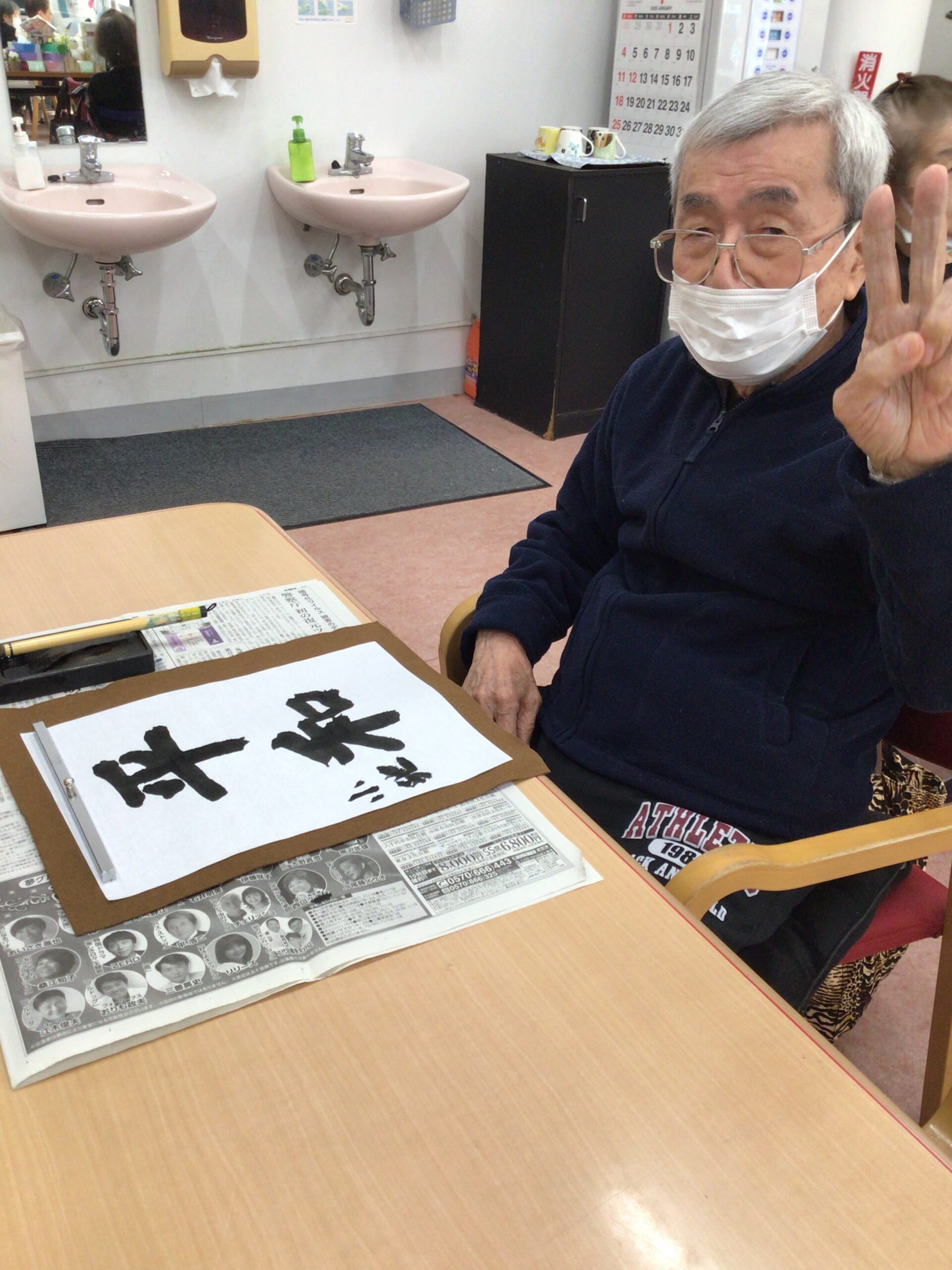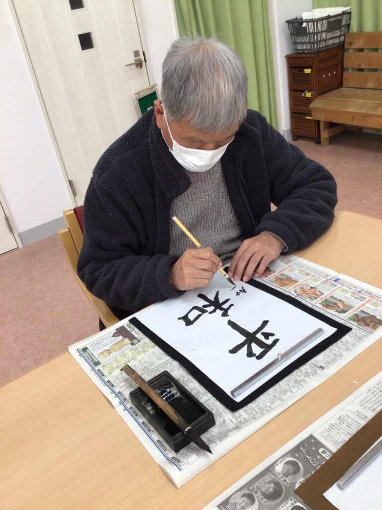 新年最初のイベントとして、デイサービスで書き初めを行いました。
