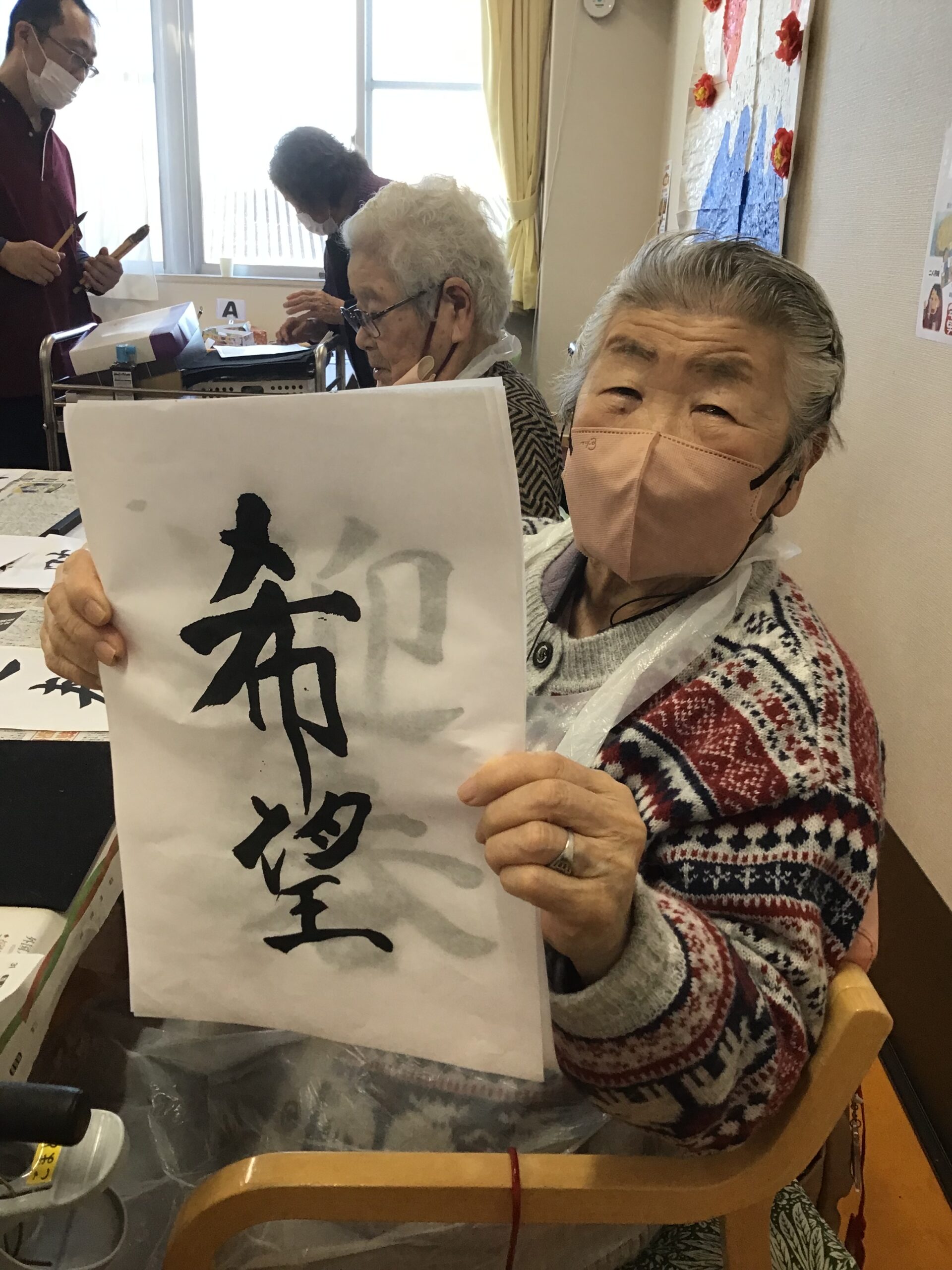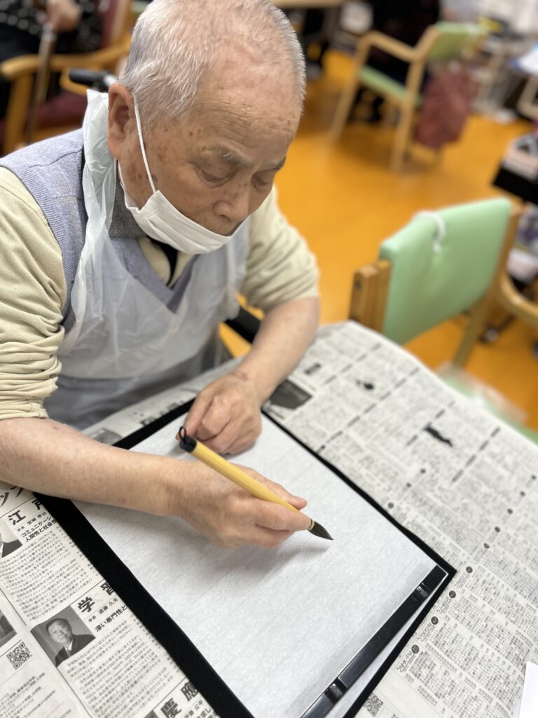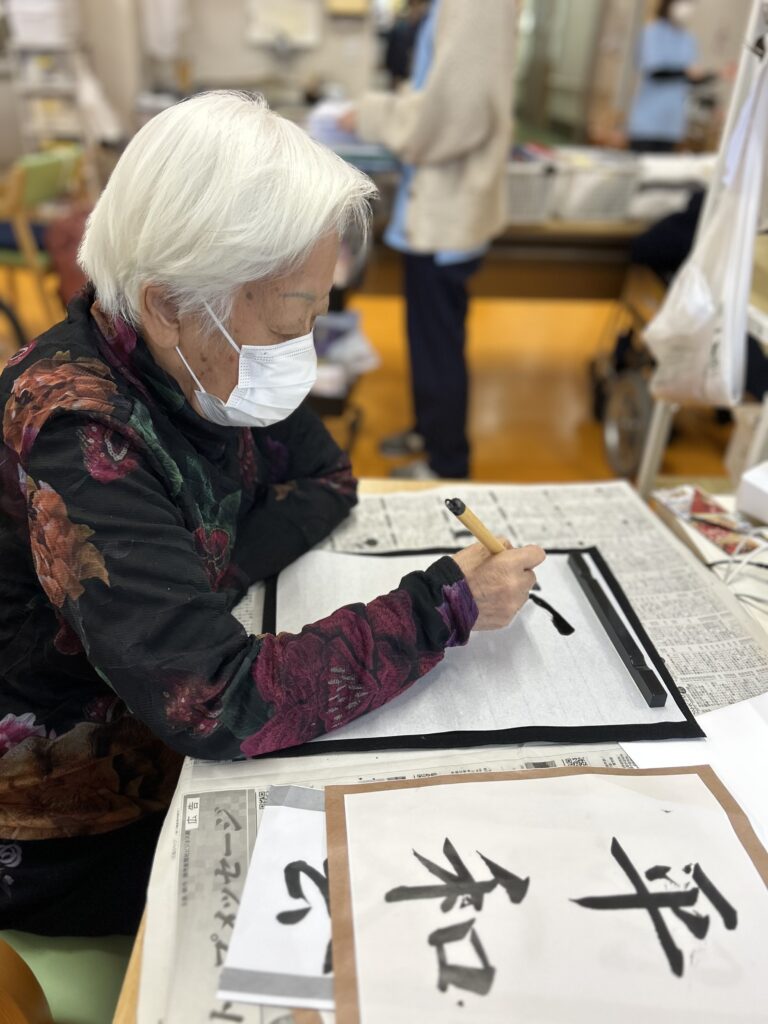 始めは久しぶりの書道に「うまくできるかな…」と不安な様子だった皆さんですが、書き始めるとスラスラと取り組まれていました🔥