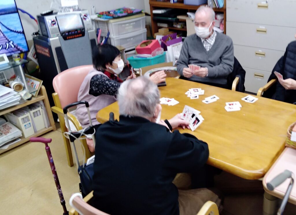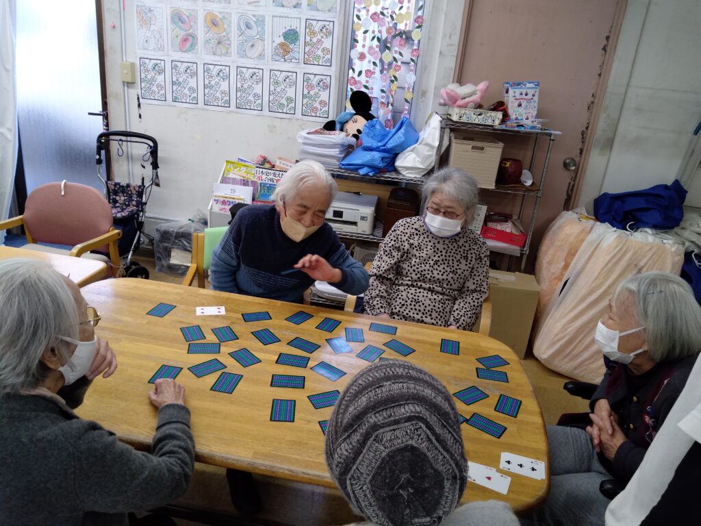 トランプは、ババ抜き神経衰弱などをそれぞれ楽しまれておりました。神経衰弱では「出たカード覚えてられないかもしれない…」と話されていた方もカードを揃えると、「合ってた!良かった!」と安堵される方もいらっしゃれば、ババ抜き「もう(ババが)ずっと回ってきちゃうの!」と笑いながら話されている方もいらっしゃいました。