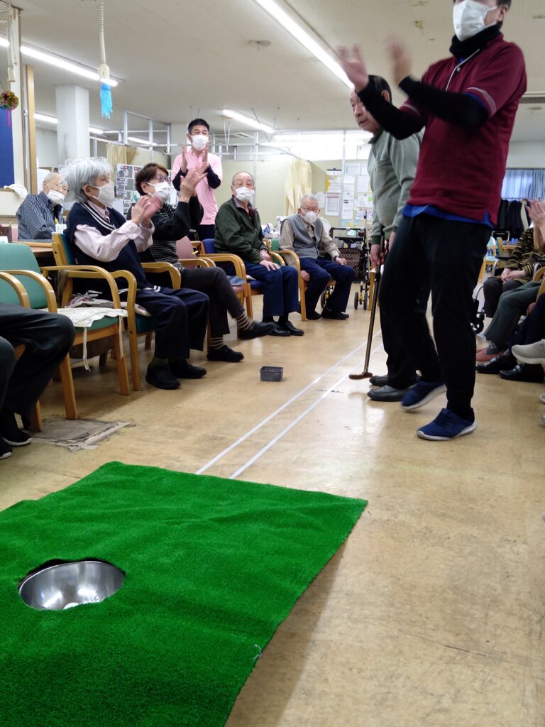 ボールがカップに入ると拍手が起こり、とても盛り上がりました。
