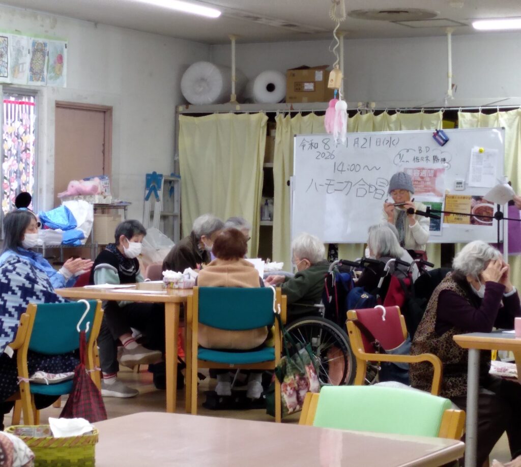 おおるり便り「透明感ある音色」 おおるりデイ Facebook コピー 2026.01.21 こんにちは、おおるりデイサービスセンターです!本日はハーモニカを演奏してくださるボランティアの方がいらっしゃってくださいました! 「お座敷小唄」や「富士山」などの皆さんご存知な曲に合わせてハーモニカを演奏していただきました。皆さん素敵な音色に合わせて手拍子もしながら楽しく歌われておりました! ハーモニカは、金属リードが奏でる透明感が独特の響きを持ちます。皆様、優しい素敵な音色を楽しまれておりました!