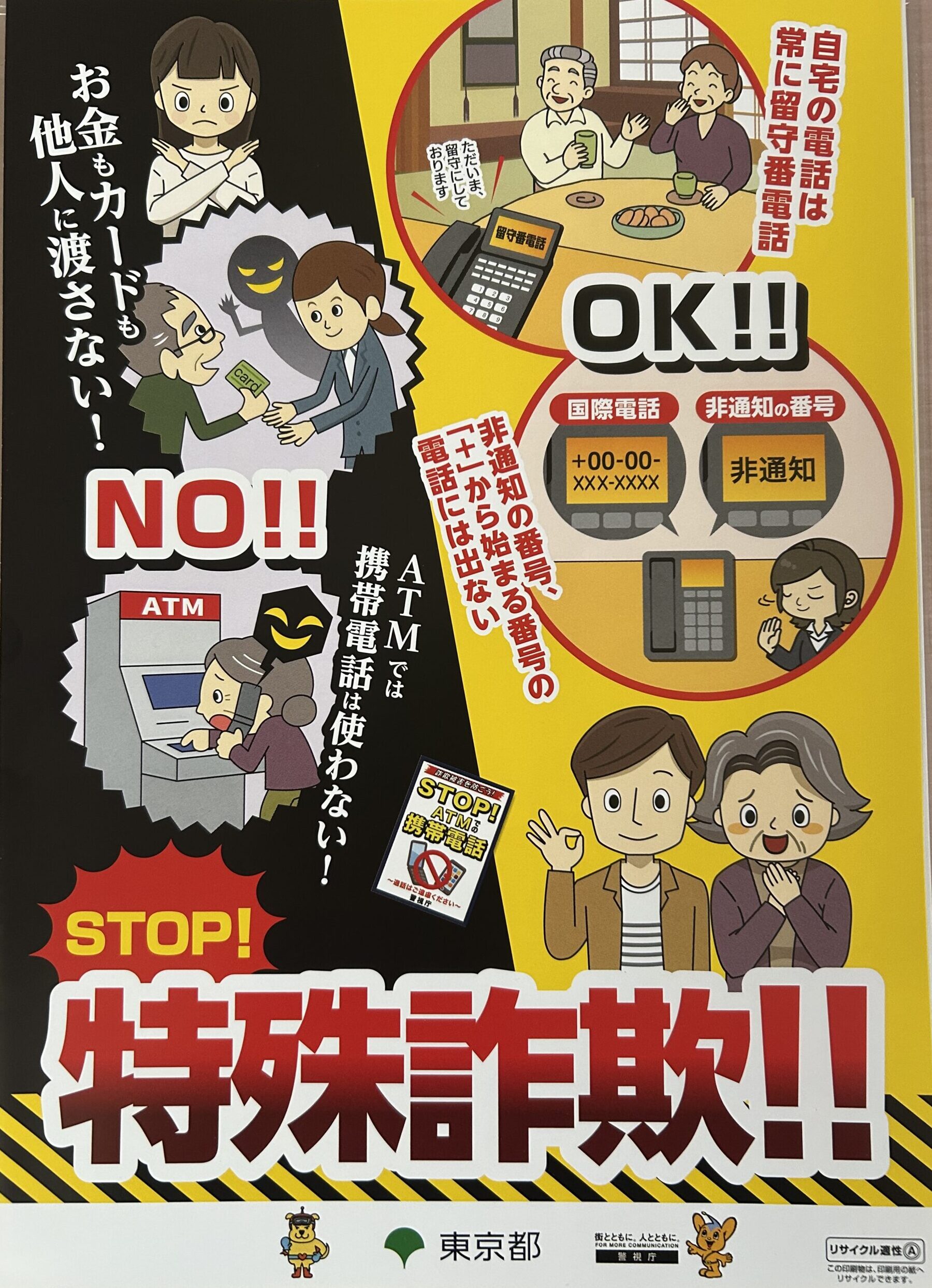 講習内容は特殊詐欺のDVDを見ていただき、その内容について資料を見ながら、被害にあわない対策として常に留守番電話にしておくこと」「電話機のナンバーディスプレイを使うこと」「自動通話録音機を使うことなどをポイントに挙げていただきながらお話ししていただきました。ナンバーディスプレイって何?」「自動通話録音機ってどう使うの?という質問に丁寧に答えていただき、皆様気を付けないといけないな…とても真剣に聞かれておりました。