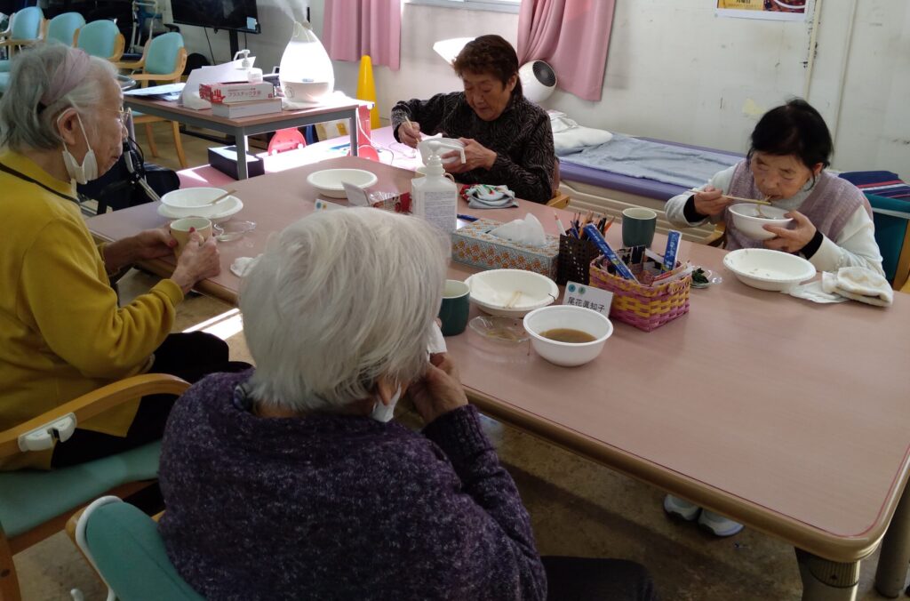 こんにちは、おおるりデイサービスセンターです!本日おおるりは、お昼に特別食ネギ豚そばほうれん草のおひたしをお出ししましたので、その様子をお届けいたします!