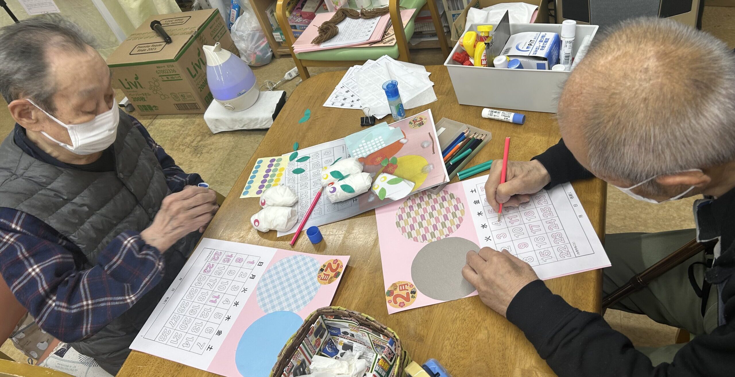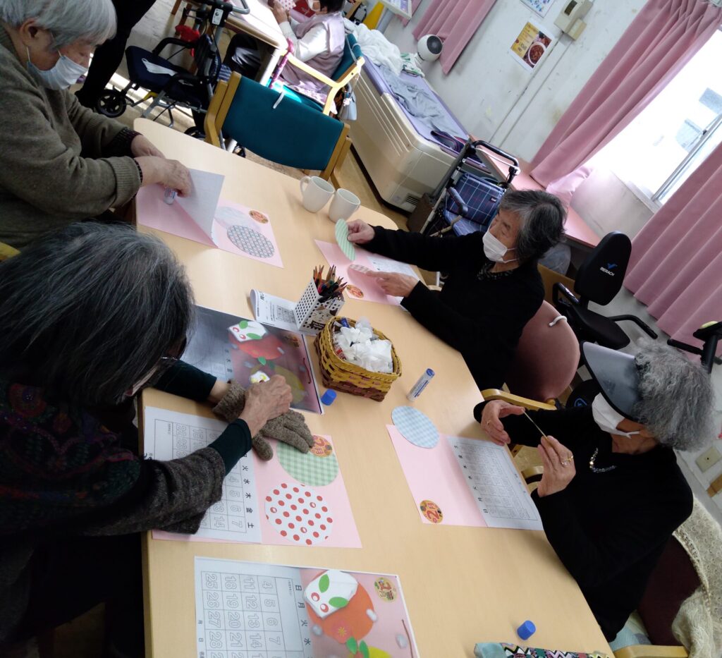 こんにちは、おおるりデイサービスセンターです!今週おおるりデイサービスは来月2月の持ち帰りカレンダーを作る週間になっております。本日はその持ち帰りカレンダー作りの様子をお届けいたします!
