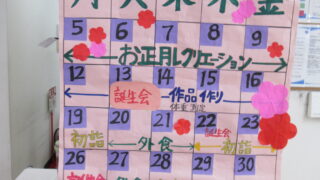 こんにちは。らいちょうデイサービスセンター関原です!新年を迎えて数日が経ちました。皆さまいかがお過ごしでしょうか。らいちょう関原も5日から営業を再開し、ここ数日新年の挨拶が飛び交っています!1月の飾りとして、皆さまに羽子板をつくっていただき...