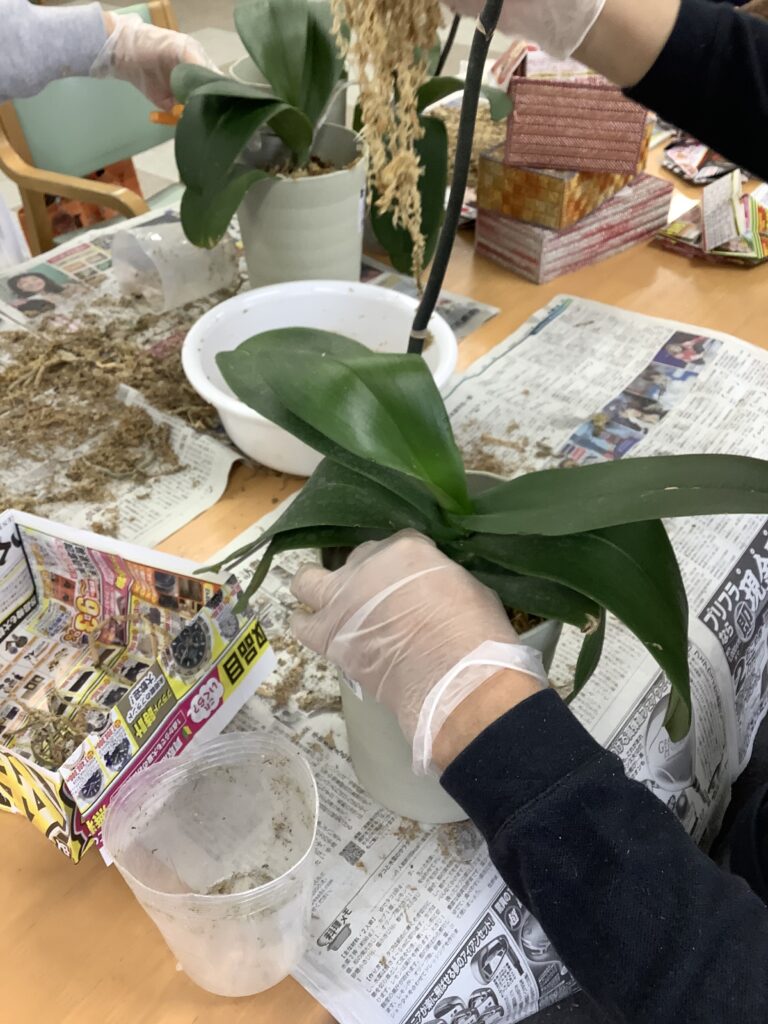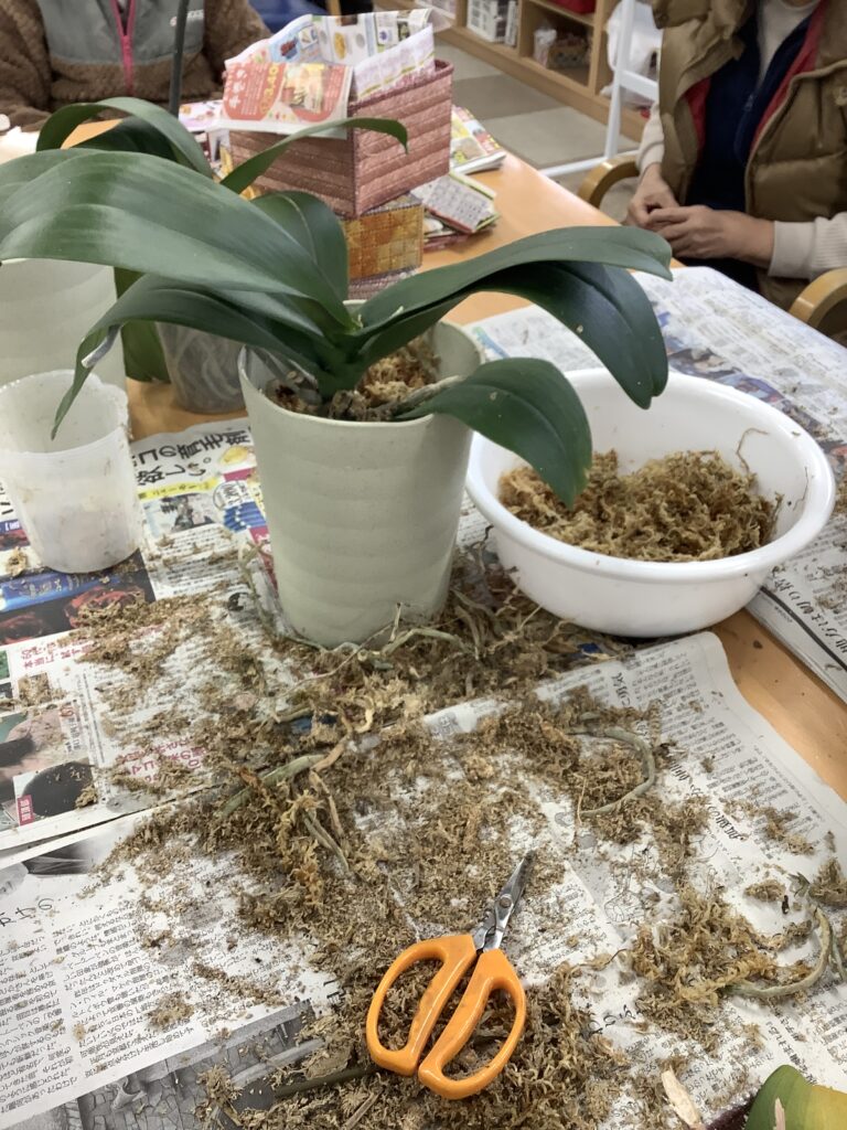 胡蝶蘭の植え替え こまどりデイ Facebook コピー 2026.02.07 利用者様から頂いた胡蝶蘭。 すでに花は終わっていますが 生花店を営む利用者様指導により 植え替えを行いました。 古い根っこを取り、新しい水苔で包んで…と 職員も初めて見る体験でした。 暖かくなって咲いたら嬉しいですね☺️