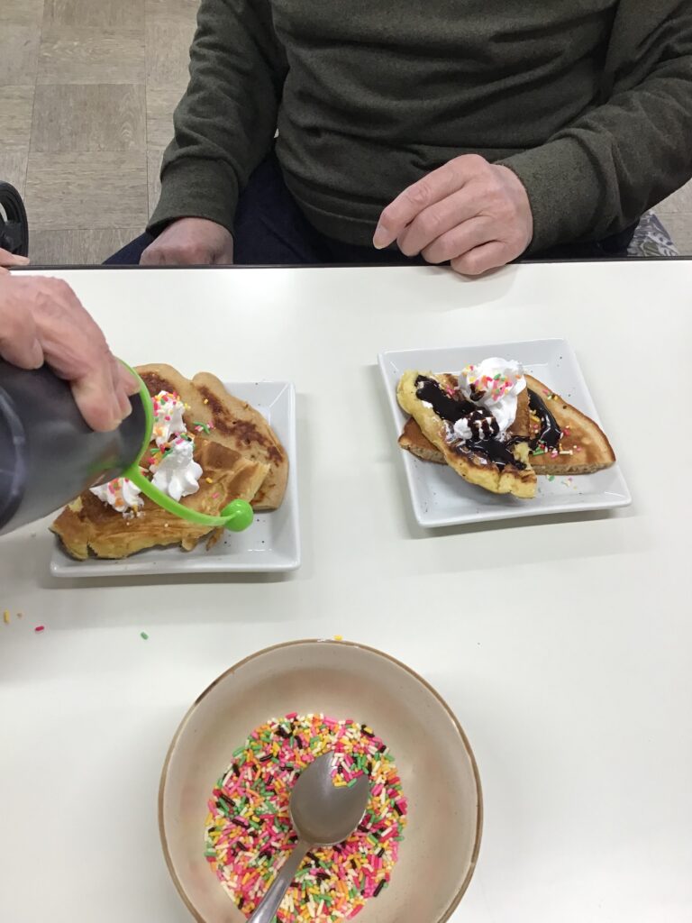 パンケーキ🥞 こまどりデイ Facebook コピー 2026.02.13 おやつ作りでパンケーキを作りました。 プレーンとココアの2種類の味に 生クリームとカラースプレーのトッピングをして 出来上がりです❤️ 出来たおやつで、誕生会を行いました。