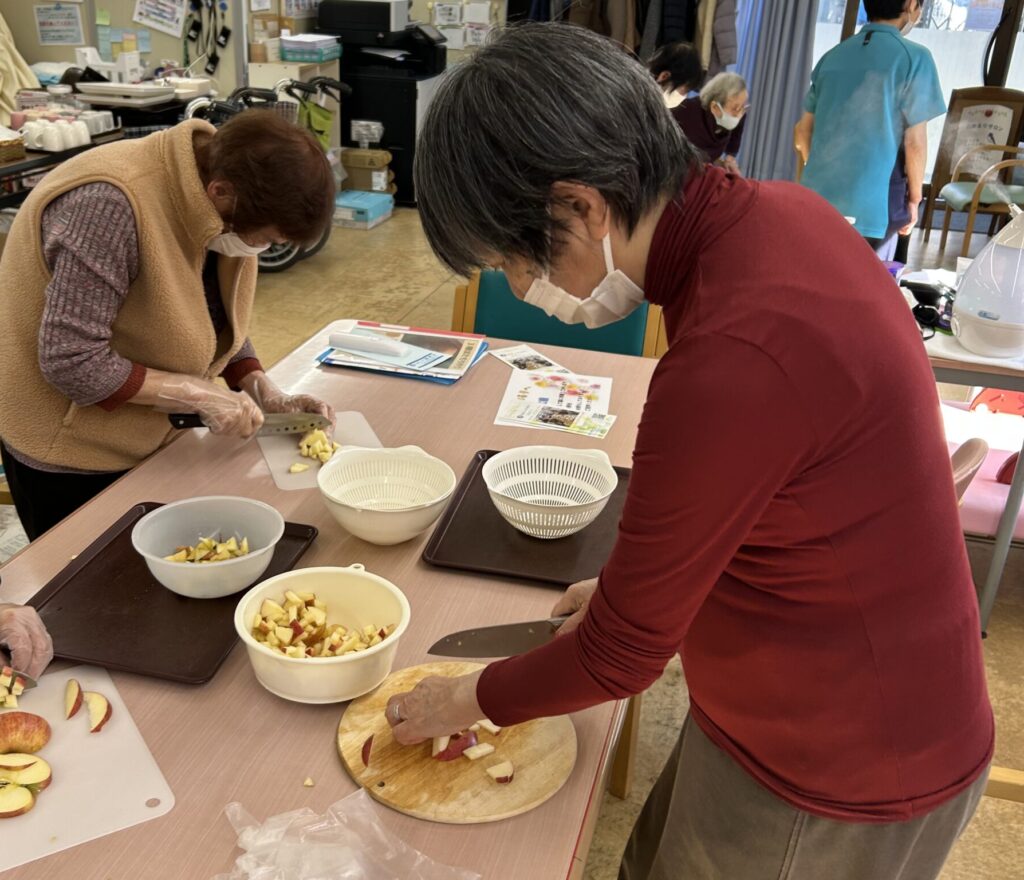 こんにちは、おおるりデイサービスセンターです!本日おおるりデイサービスは、おやつ作りの日!皆様で協力してタルトタタンを作り、召し上がりましたので、その時の様子をお届けいたします。