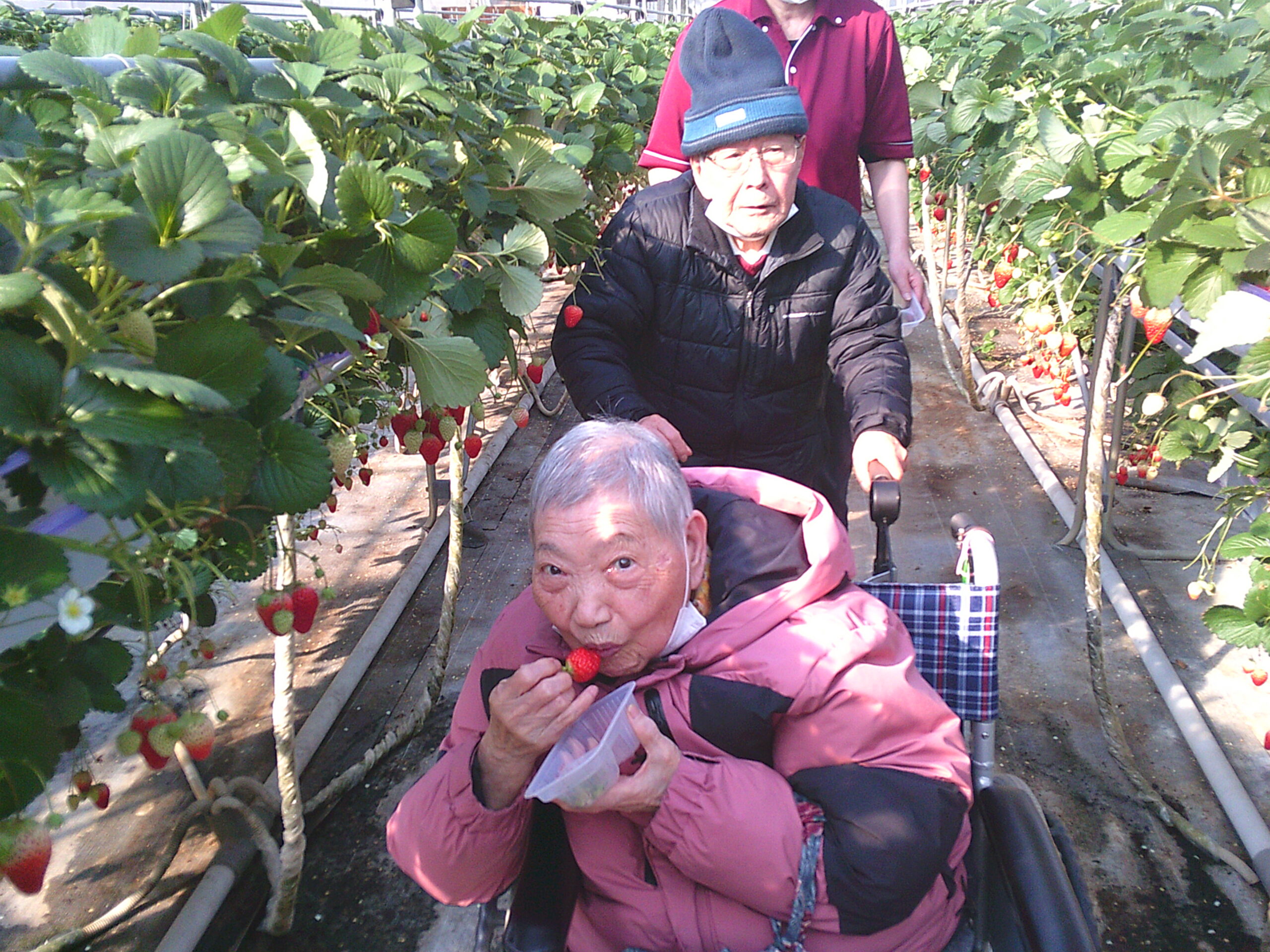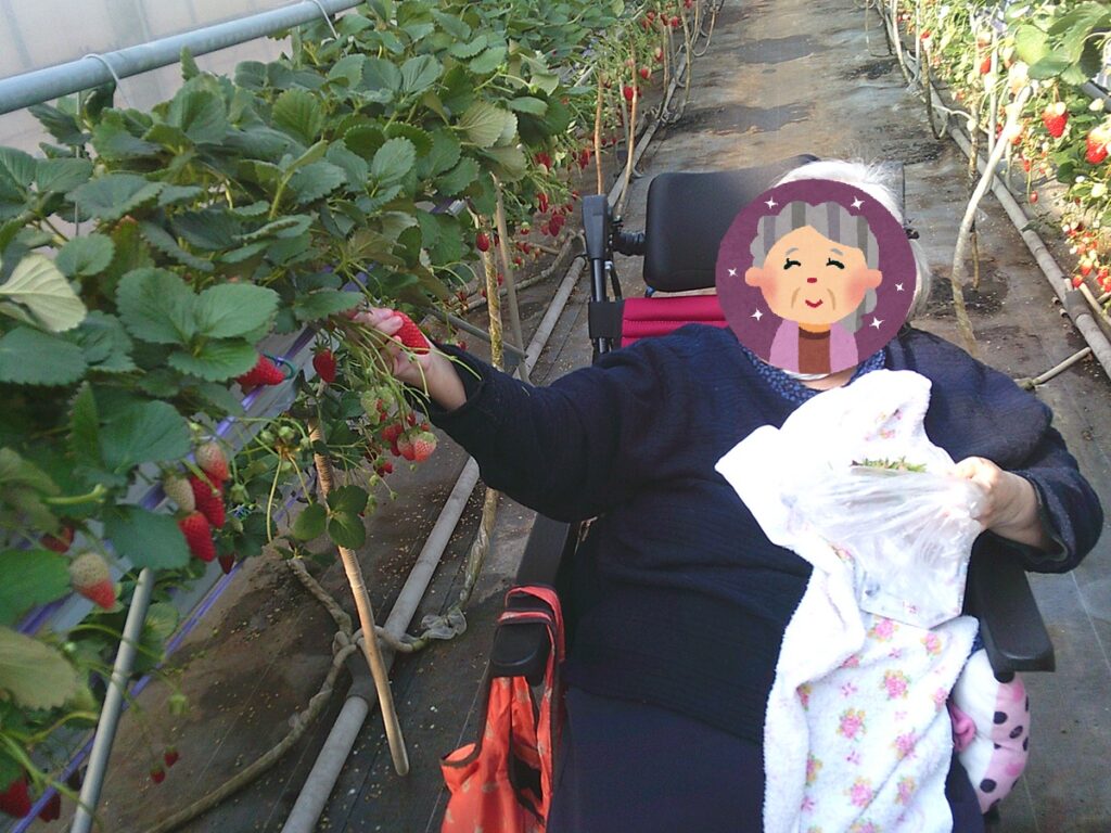 今日は、利用者の皆様と一緒にいちご狩りに行ってきました。
