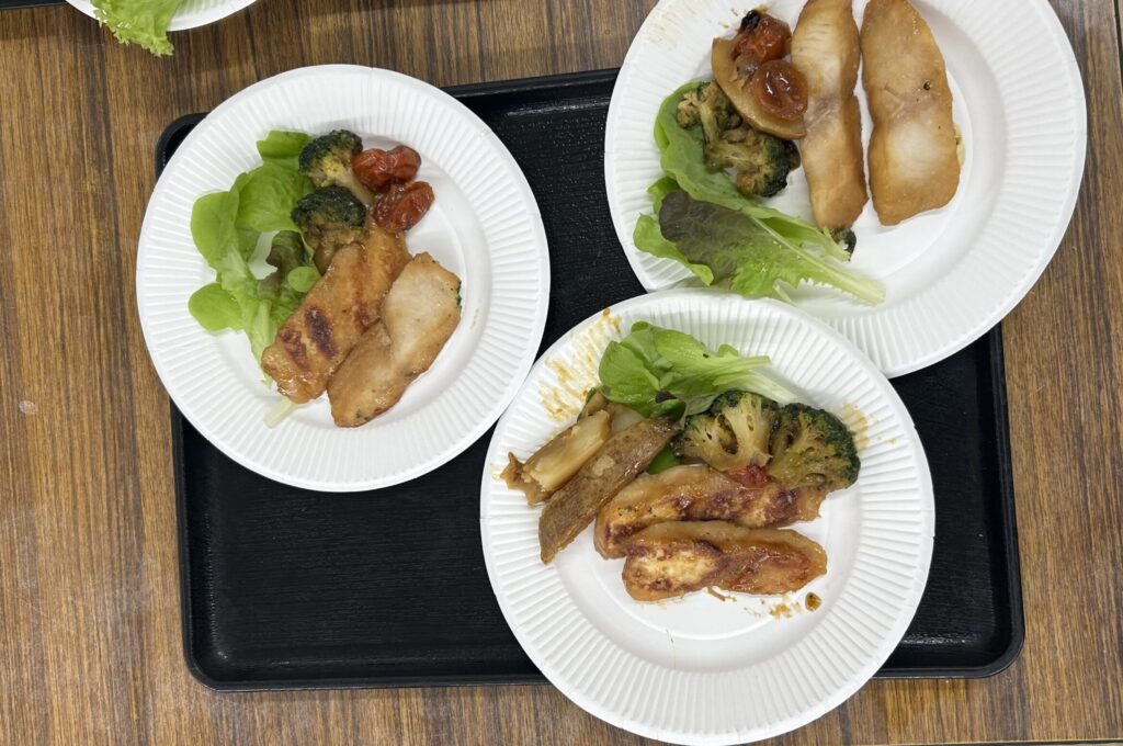 今回お出しした白身魚のバター醤油焼きは醤油と白身魚の旨味がバターのコクと香りを合わさり、ご飯が進む味付け。さらに白米は新潟産のコシヒカリをご用意いたしました。皆様ご飯が進んでおり、「少し味濃いかな?と思っていたけど、野菜やポテトと一緒に食べるとちょうどいい!」ととても好評でした!
