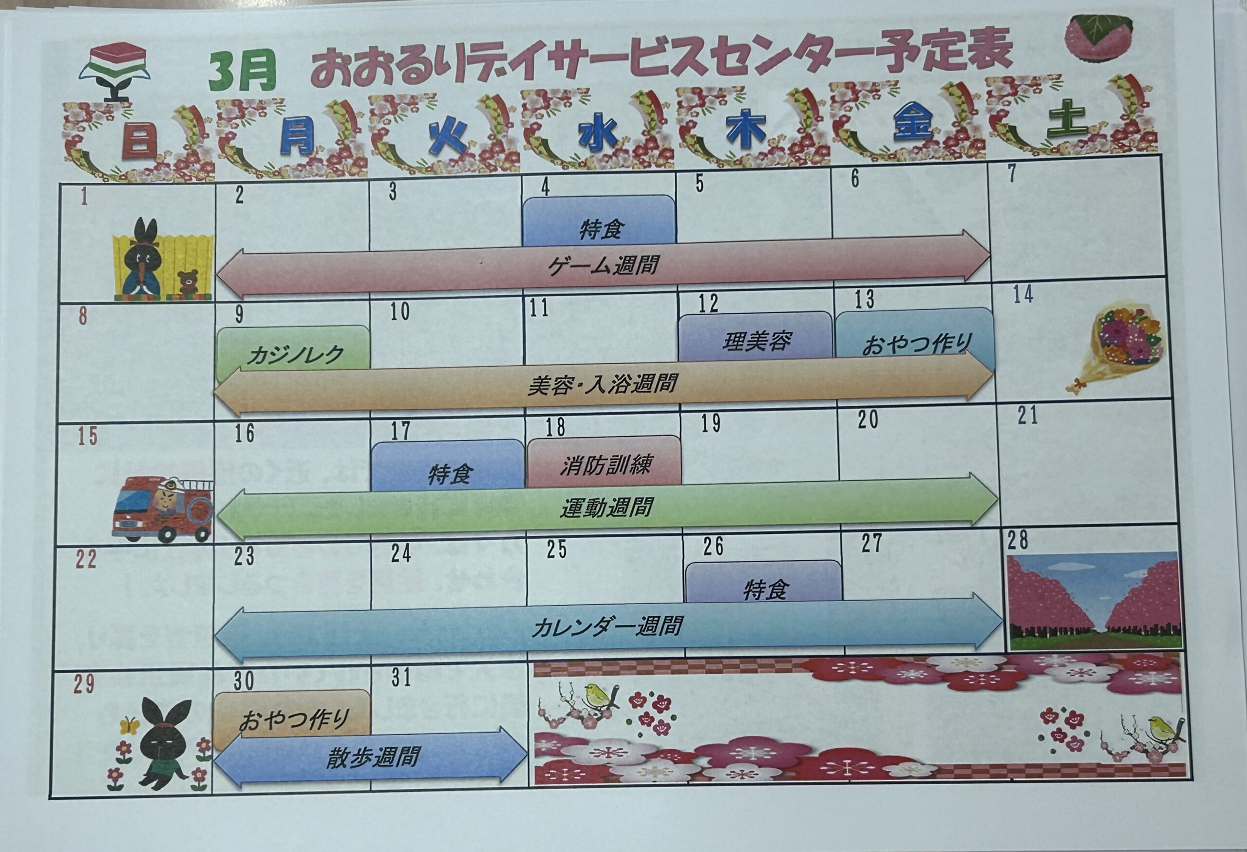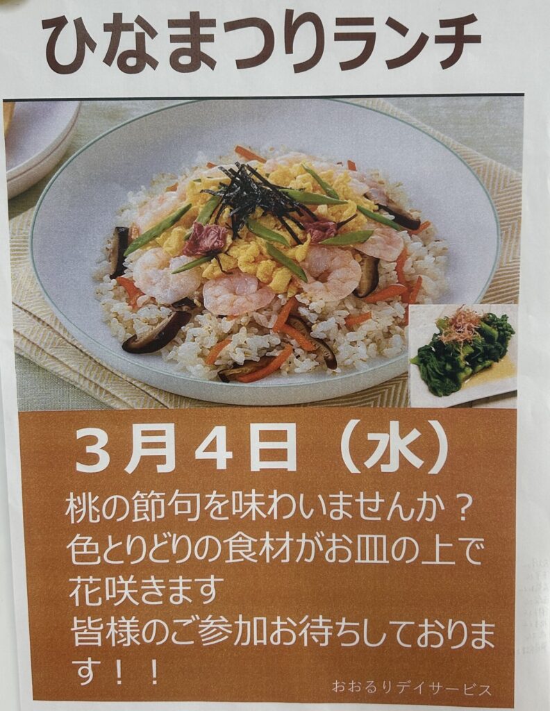 こんにちは、おおるりデイサービスです!2日後には3月になります。あっという間ですね。本日は、3月に行う予定のイベントのお知らせをいたしますので、臨時参加のご検討や、おおるりデイサービスで行っているイベントの内容について知っていただけたらと思います。