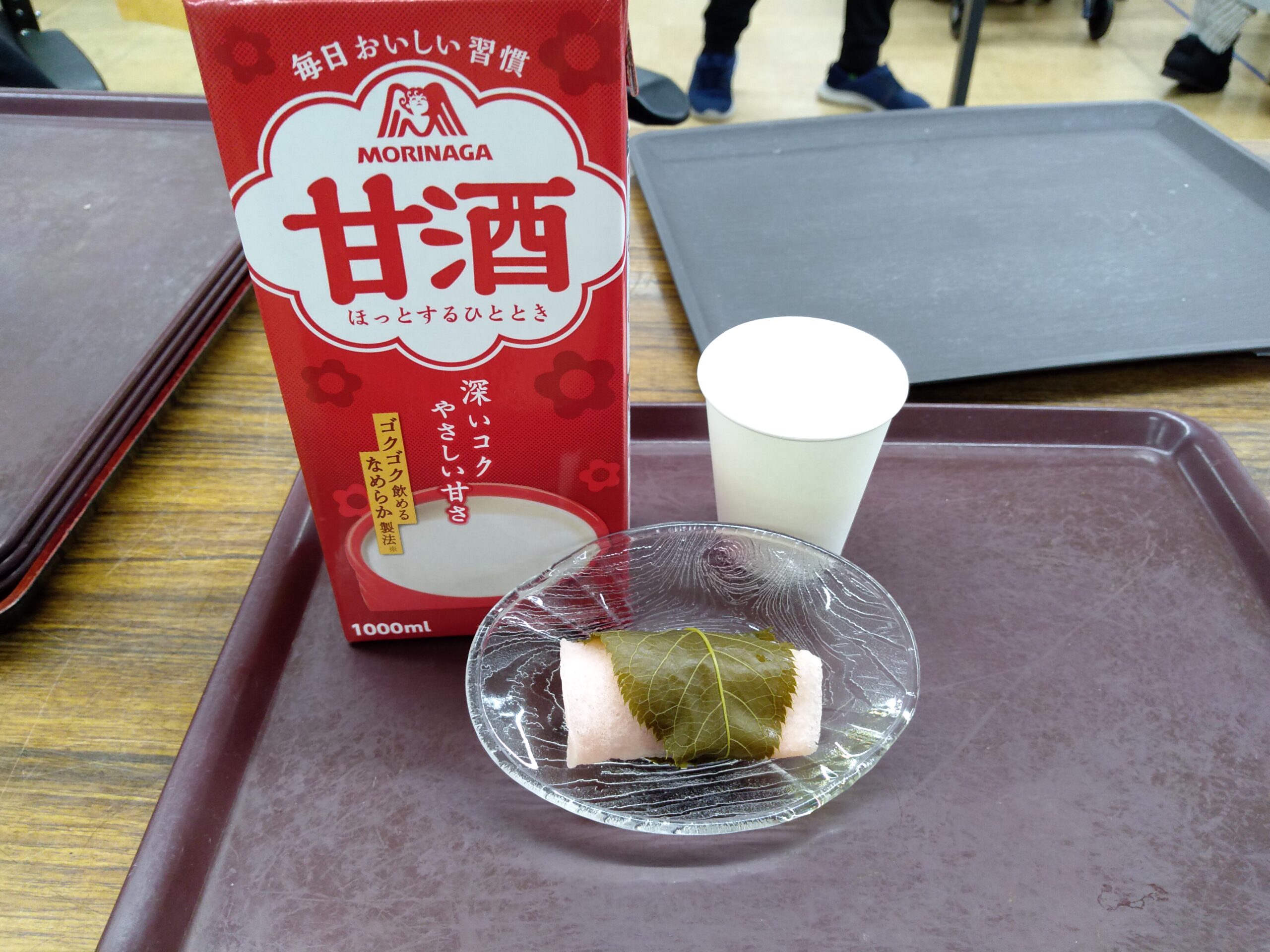 3/3(火)当日は、おやつに「桜餅」と「甘酒」をお出ししました!甘酒は「久しぶりに飲んだ!お酒入ってないけど酔っぱらっちゃうわね!」と、桜餅は「ひなあられもいいけど、春を感じられていいわね」と喜ばれておりました!