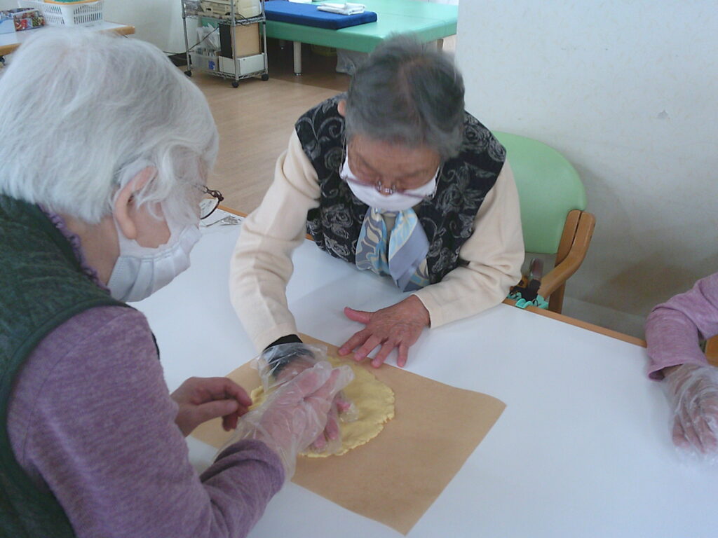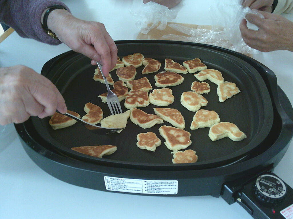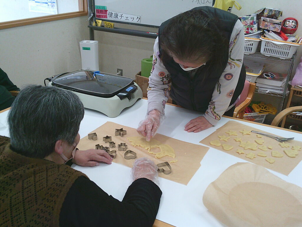 🍪クッキー作り🍪 おしどりデイ Facebook コピー 2026.03.12 3/14はホワイトデーということで、今日はみなさんとクッキー作りを行いました。 生地をこねて、型でくりぬいて、ホットプレートで焼きました。上手く型でくりぬくことが出来なかったり、ちょっと焼きすぎて焦げちゃうこともありましたが、そんなことはご愛敬(#^.^#) 皆さんと楽しみながら協力し合って、美味しいクッキーを作りあげました! おやつの時間に美味しく食べたら、あっという間になくなりました!! Digital Camera Digital Camera Digital Camera