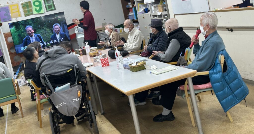 こんにちは、おおるりデイサービスセンターです!おおるりデイサービスは、帰り前に気持ちよく帰っていただくために、カラオケを行っております。本日はその様子をご覧いただければと思います。