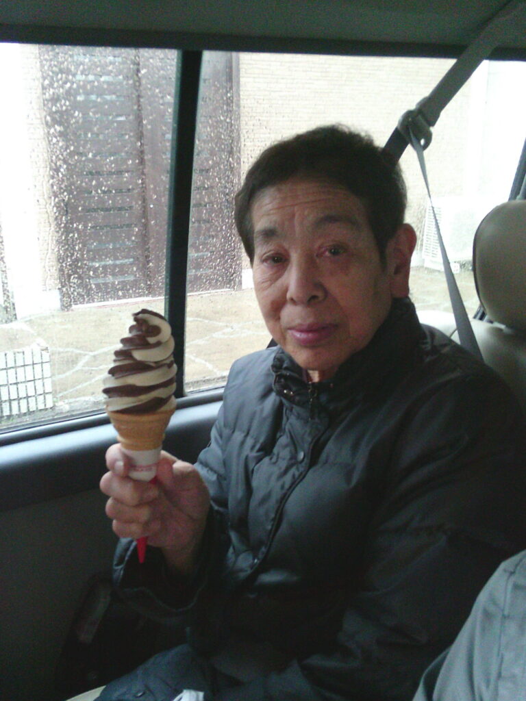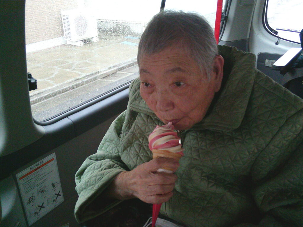 最後は、おしどりデイサービスの近くにあるタコさん公園に車を止めて、ソフトクリームを味わいながら車中から公園の桜を楽しみました。やっぱり花より団子かもしれないですね(*^▽^*)
