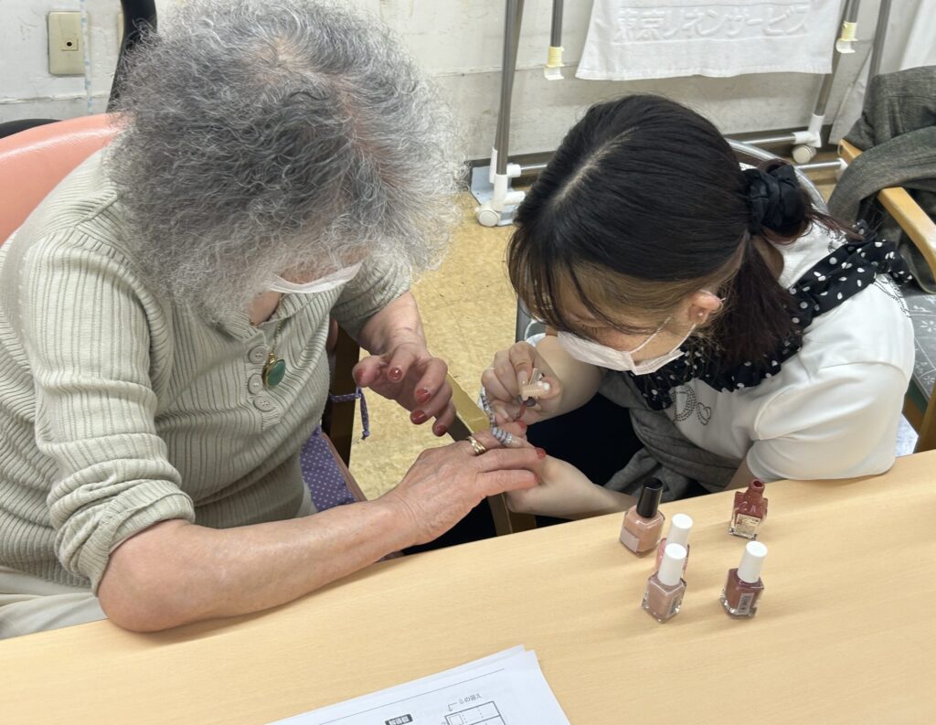 こんにちは、おおるりデイサービスセンターです!今週おおるりデイは「入浴・美容週間」ということで、午後にはネイルを塗ってくださるボランティアの方がいらしてくださいました。本日は、その際の様子をご覧いただければと思います。