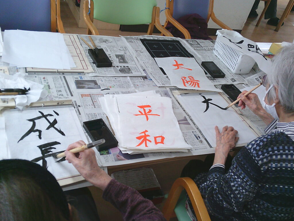 本日は午後に習字を皆さんで取り組みました!