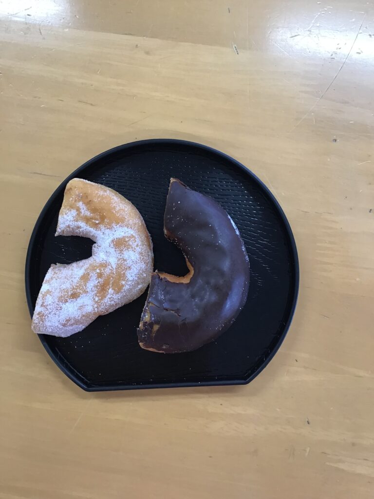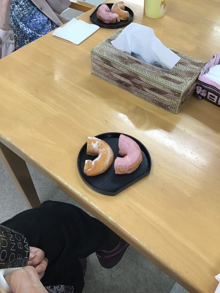 おやつにはドーナツを用意し2種類の味を楽しみました🥺皆さん「美味しい😋」と笑顔が見られました(о´∀`о)