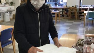 お風呂で使うバスタオル。こまどりでは利用者さんがたたむお手伝いをしてくださってます。いつもありがとうございます😊
