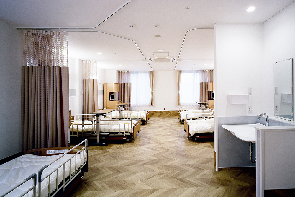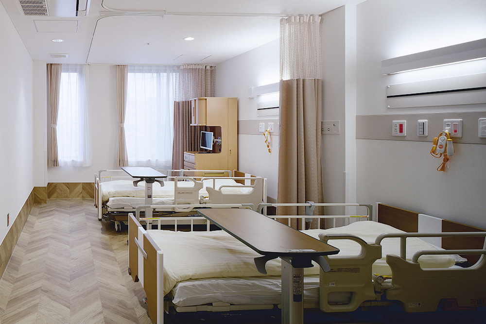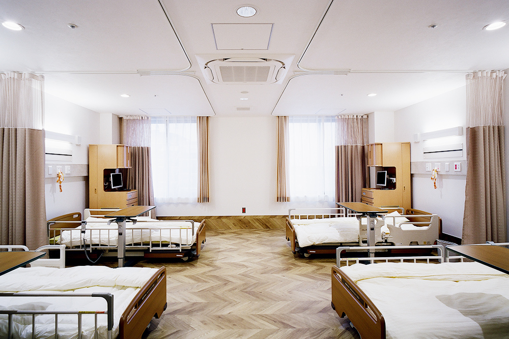 入院中の居室は、患者さまの病状やご希望に応じ個室・2人部屋、多床室として3人、4人、5人部屋をご用意しております。
