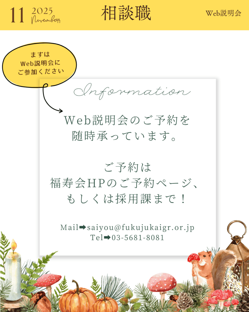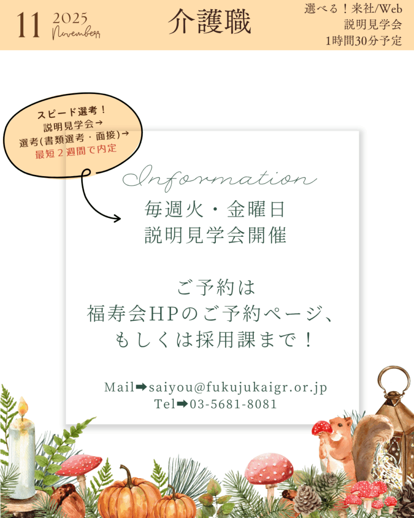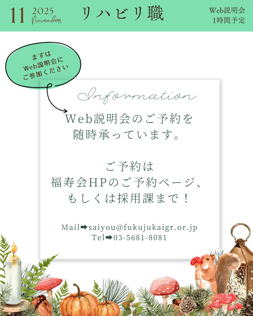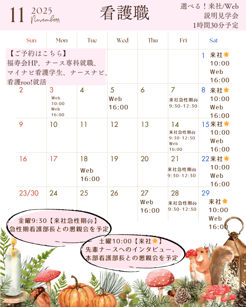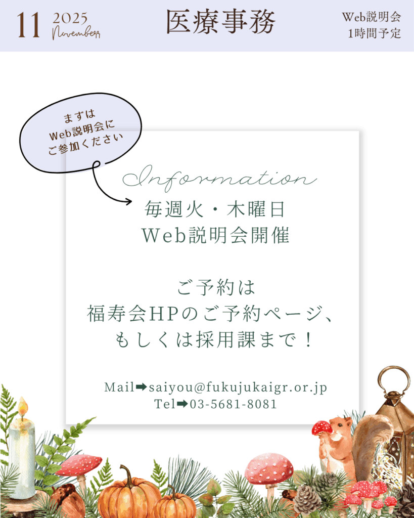 【新卒】11月説明会・説明見学会のご案内(看護、リハビリ、介護、相談、医療事務)