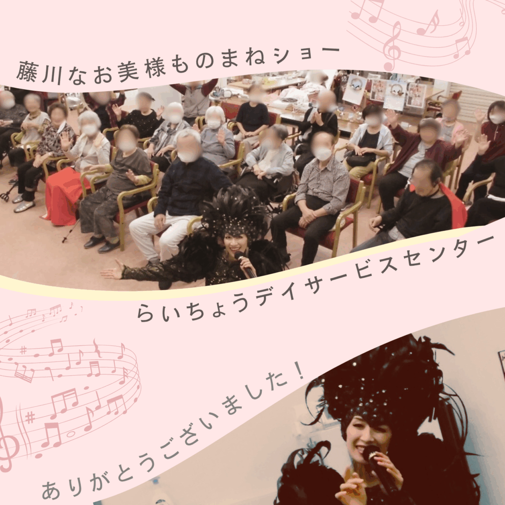 2025年10月27日(月)、らいちょうデイサービスセンターにて、藤川なおみ様によるものまねショーを開催しました。