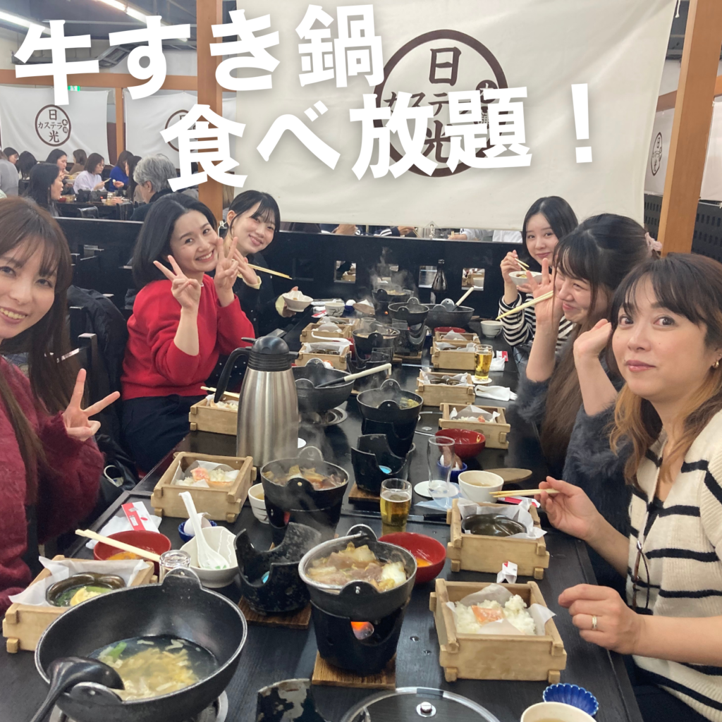昼食は「磐梯日光店」にて栃木ブランド牛のすき鍋食べ放題を楽しみ、その周辺の散策も行いました。