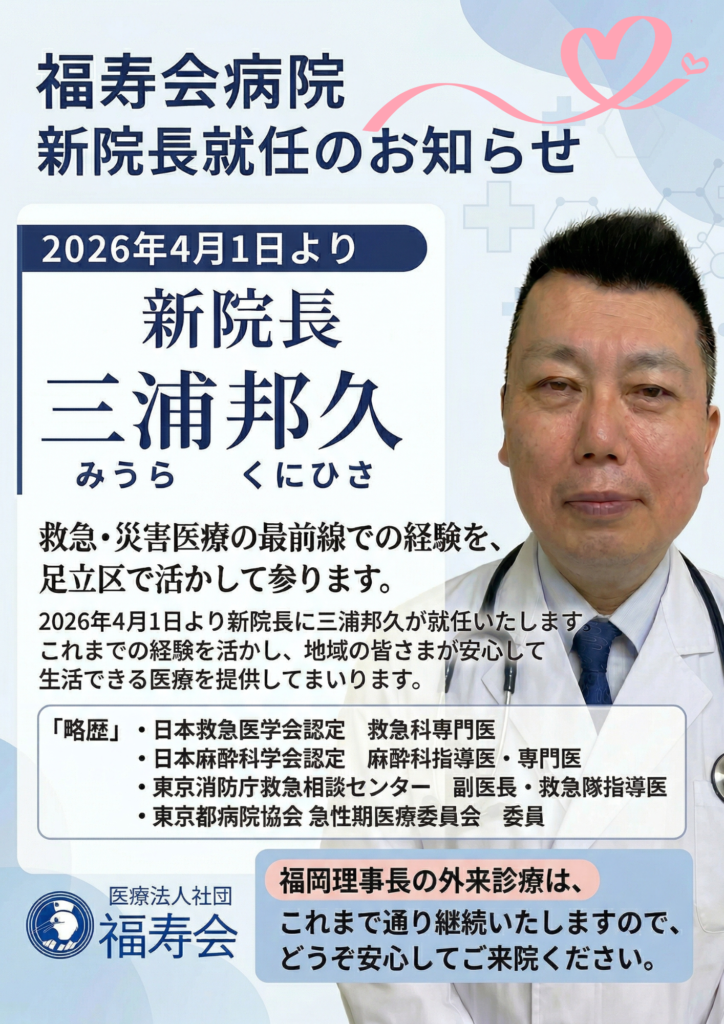 福寿会病院 新院長就任のお知らせ(2026年4月1日付)