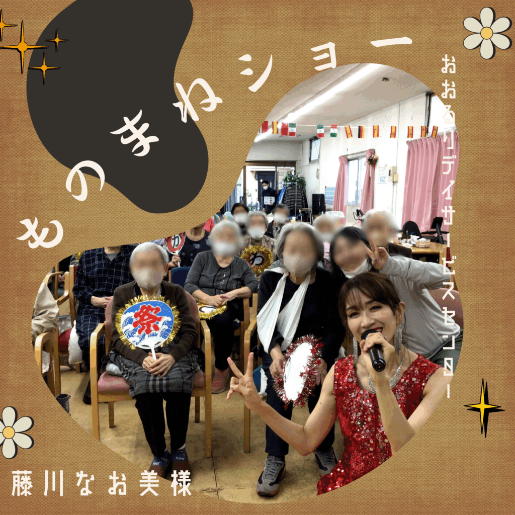 2025年10月14日、おおるりデイサービスセンターにて、藤川なお美さんによる「ものまねショー」を開催しました。