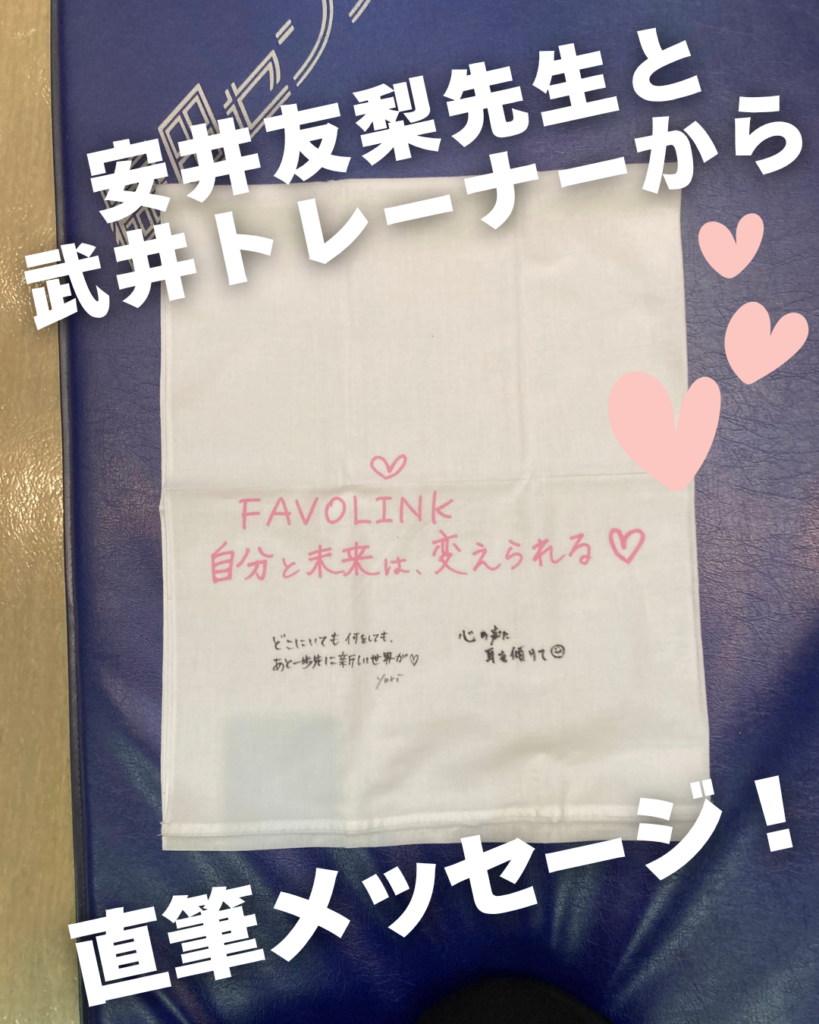 グッズには安井友梨先生および武井トレーナーによる直筆メッセージが添えられており、参加者のモチベーション向上にもつながりました。