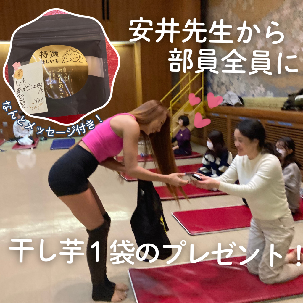 さらに今回は、干し芋好きで「全国ほしいもグランプリ」の審査員も務められている安井先生より、部員全員へ干し芋のプレゼントをいただきました。